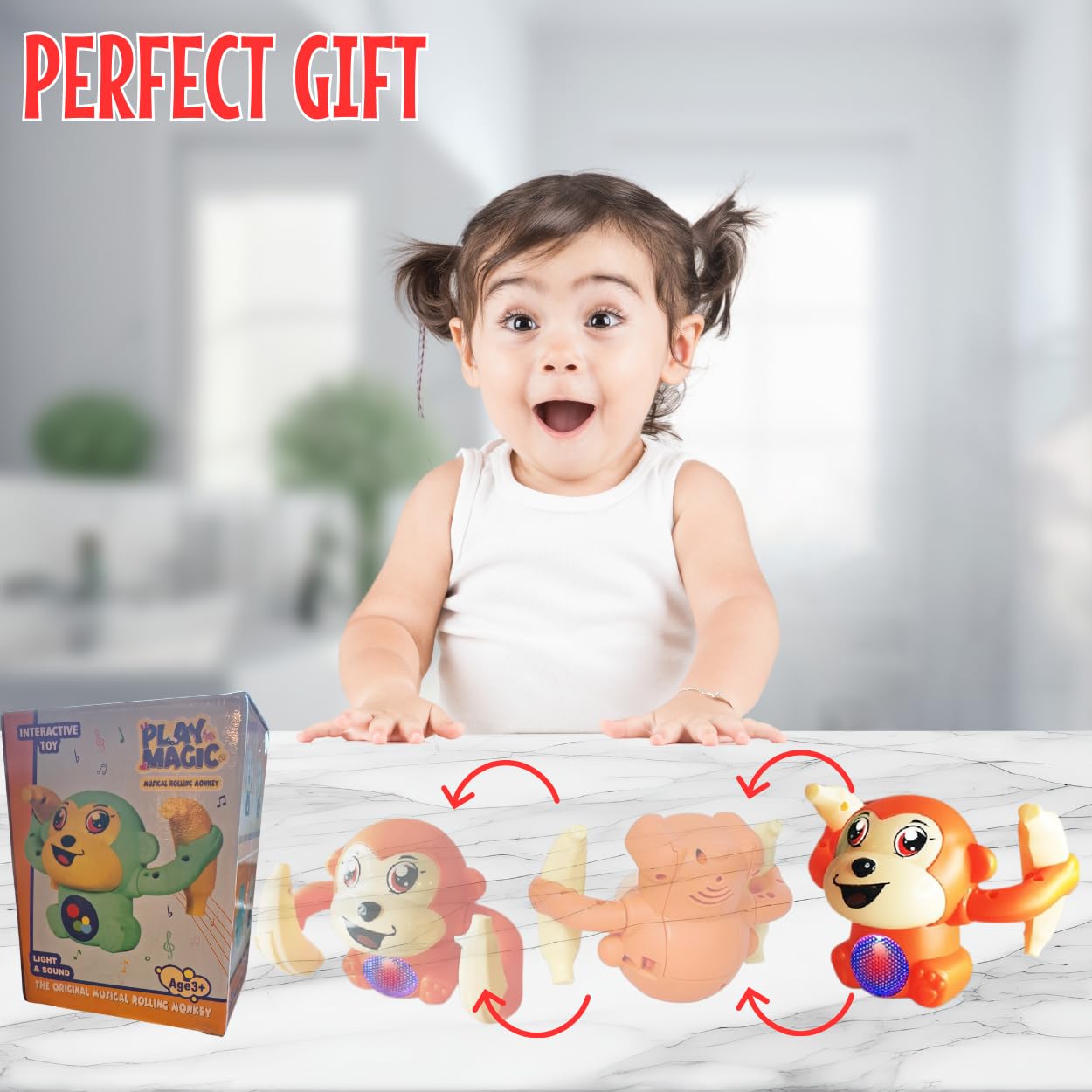 Dance Party Anytime: Get ready to boogie! PlayMagic The Original Musical Rolling Monkey brings the party to your home. With its groovy moves and catchy tunes, your child can dance and have a blast whenever they want! |