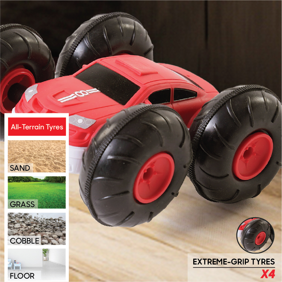 Eye-popping design - the flip stunt delights with its stunning design, having fun oversized tires to giving an amazing action-packed experience. |