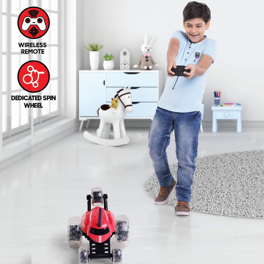 โ HIGH SPEED STUNTS AND TRICKS: Perform wheelies, 360-degree spins, flips, stunts, and more! The powerful motor ensures exciting high-speed action for kids of all ages. |