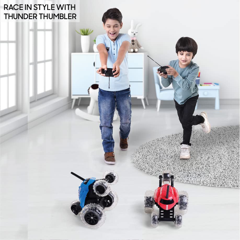 โ IMPORTANT INFO: To use two Thunder Tumblers together, you MUST use one black tumbler with one red OR one blue tumbler. You cannot pair one red and one blue tumbler together, nor can you pair multiple tumblers of the same color together. Car requires 4 AA batteries and 1.5V battery (not included). |