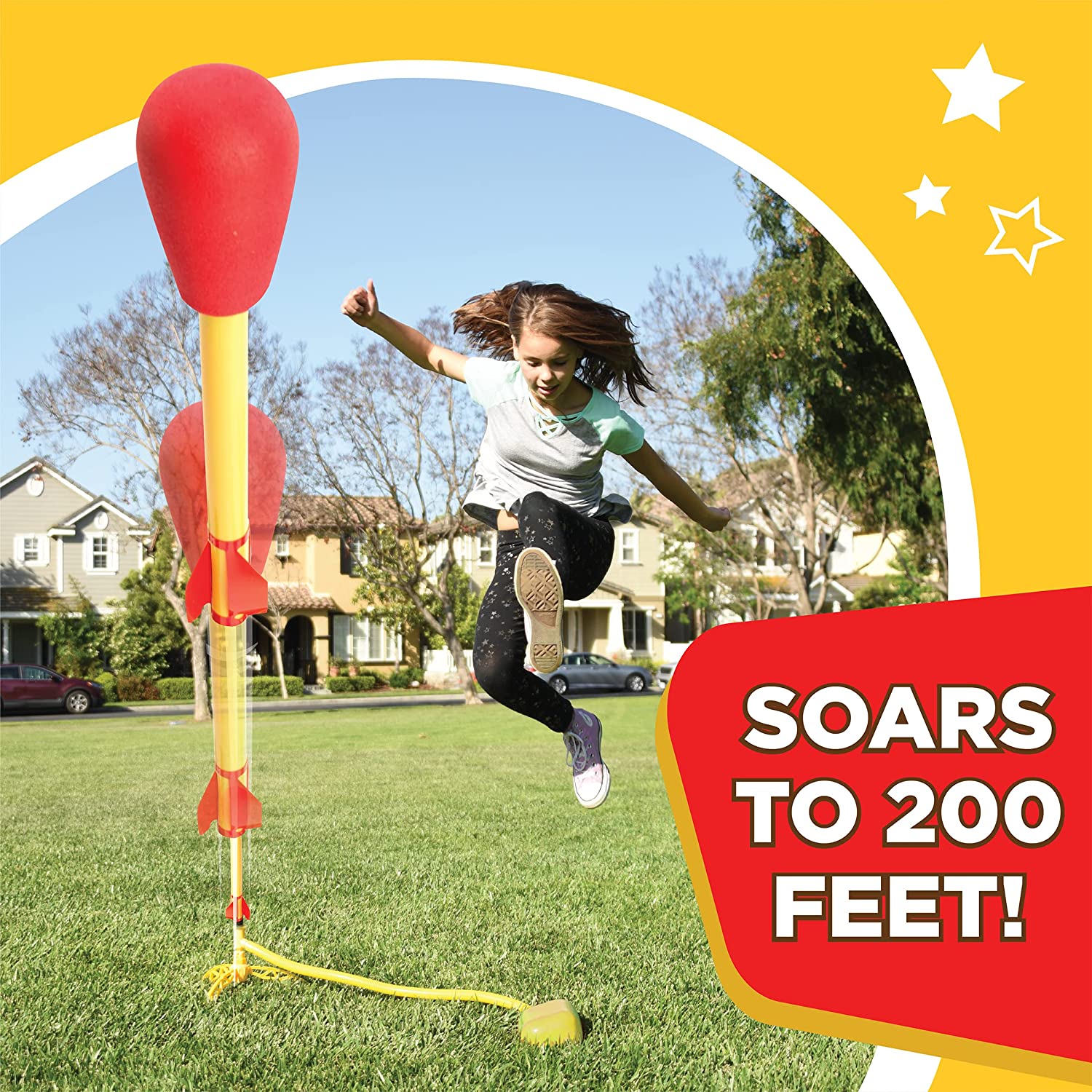 Active and Healthy: The Original Stomp Rocket Ultra is a fun way to get your kids off their screens and out of the house- it is the best activity to play outdoors. Stomp Rocket Soars up to 200 Feet in the air. |